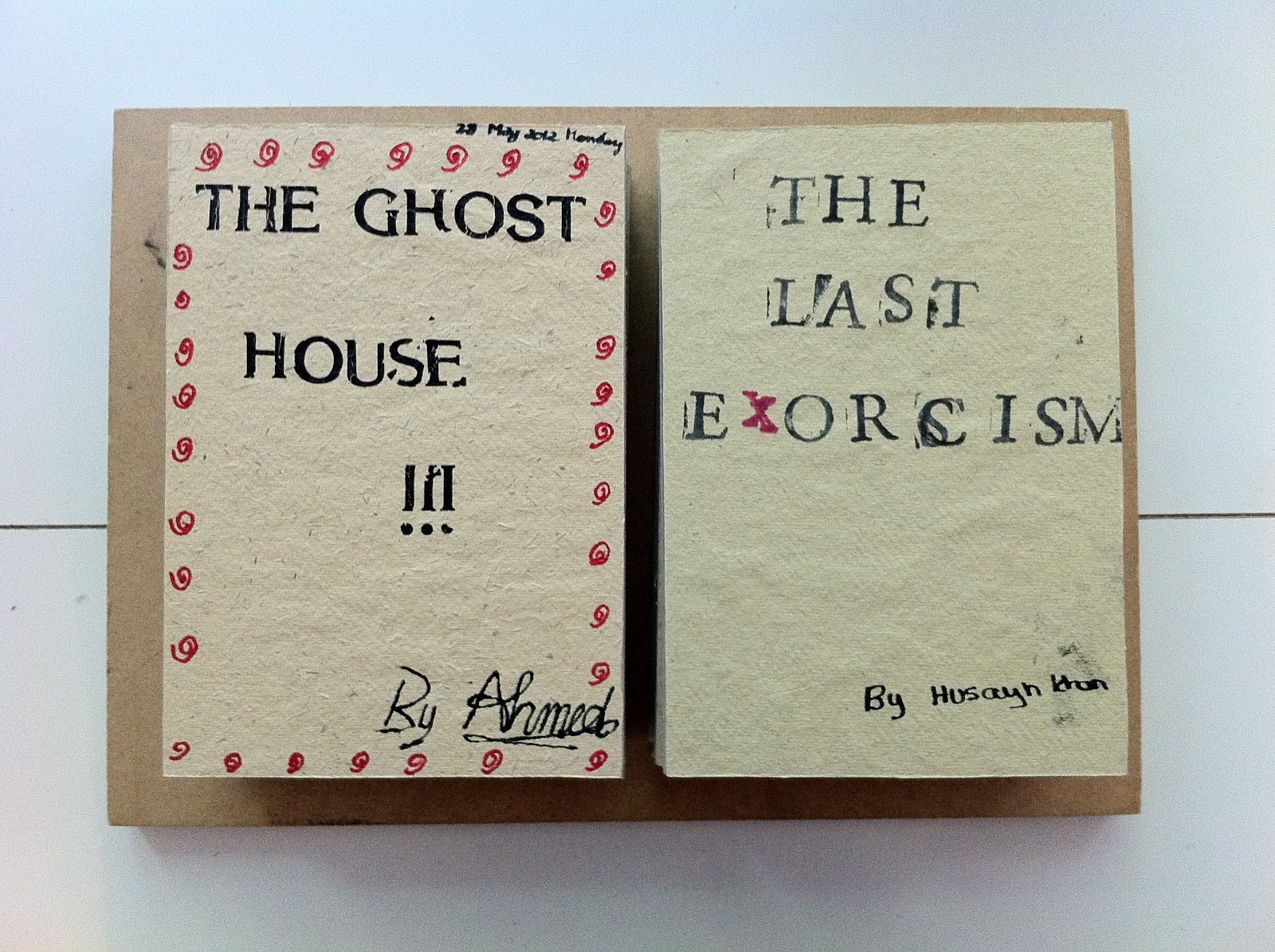 This seems to have gone incredibly quickly and now all making sessions are over and its reflection and exhibition time. I'm really pleased with with the outcomes of my 2 groups. Don't want to do my Monday group a disservice, but at the beginning I really wondered what they were going to achieve. They created some beautiful books in the end with a diverse range of texts and techniques and I'm really chuffed for them. I'm especially happy with the Monday groups story-boxes. They've been brilliant and responded amazingly to being given a lot of creative freedom. Their making skills really came into the fore and they problem solved without the need for too much adult assistance. The process is always key for me in projects like this and it was great to see these go from the design sheet first stages through a series of experiments to the finished proucts. I purposely wanted both groups to develop simple stories that grew with the design process as I picked up early on, that grinding out lengthy writing sessions may not prove productive. It was great to hear the 2 boys groups develop as 'raps'. I'm always slightly wary when 'rapping' rears its head as a song writing style, but my anxieties were unfounded on hearing these guys tell their stories brilliantly, considering the style, sound and delivery of the New Ghosts theme. Hope they get to record them for the exhibition. Special thanks to Emma and Jenny for being so great to work with,all their support and going with the concepts. Massive thanks to Vik for coordinating the whole logistal nightmare of the secondary timetable and a brilliant project. And lastly but not least Lucy, Nicky and Sarah for being such fun to work with and their long lasting inspiration...keep in touch.